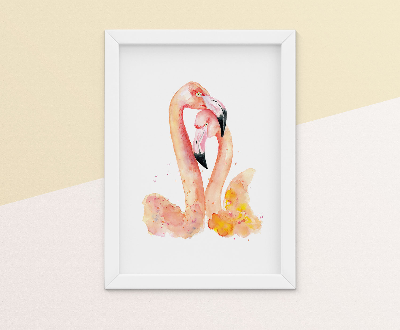 The living room is another killer spot for a flamingo print. Make it a set of few smaller prints, but keep the colour theme in the pink zone. You’ll be amazed at what a bunch of flamingos can do to your launch space.