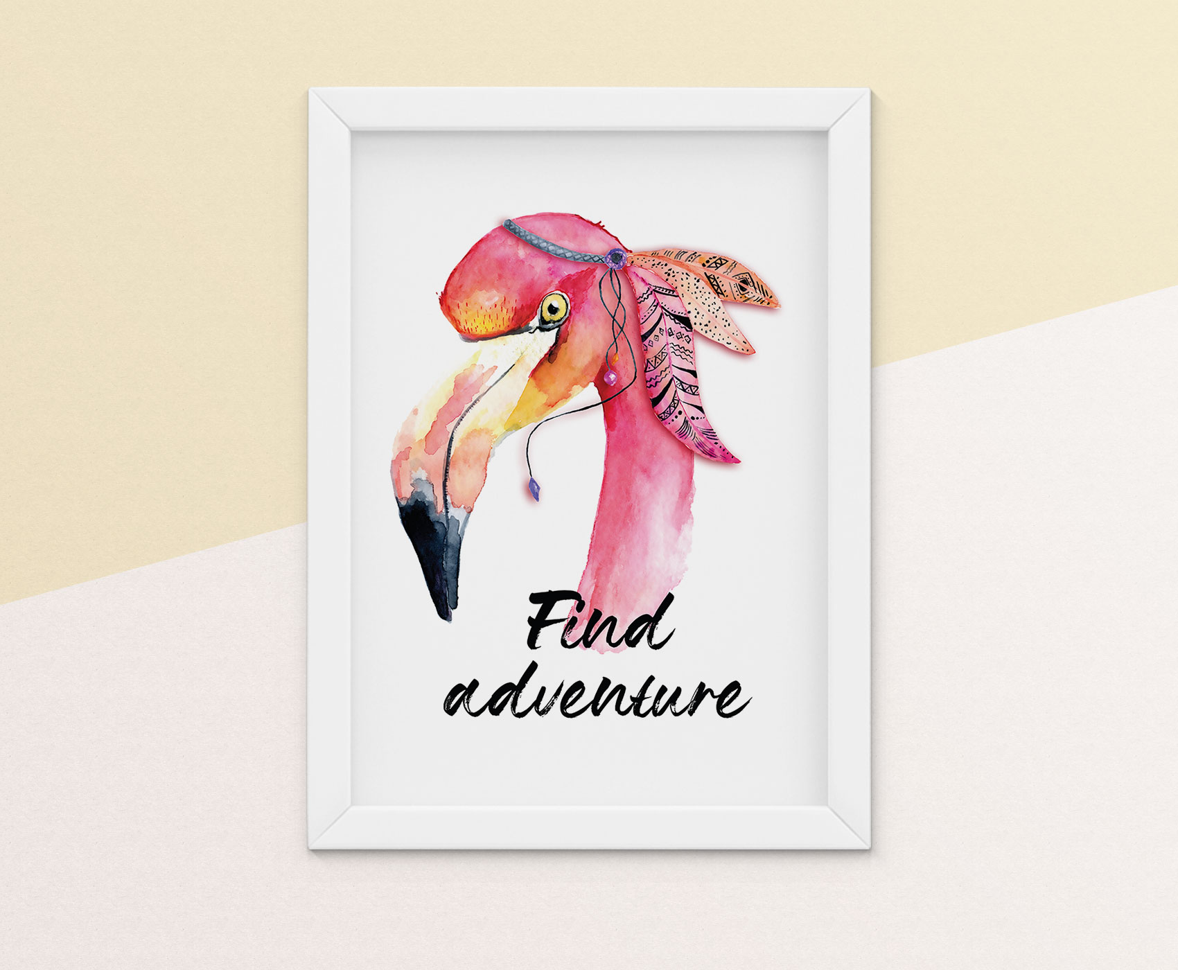 If you’re unaware of the symbolic meaning of flamingos, it might surprise you, that flamingo images represent peace, harmony and relaxation. And in some cultures, a flamingo stands for “time to get some fun”, so you can place this poster either in a peaceful and dreamy environment or in an energetic, vivid room.